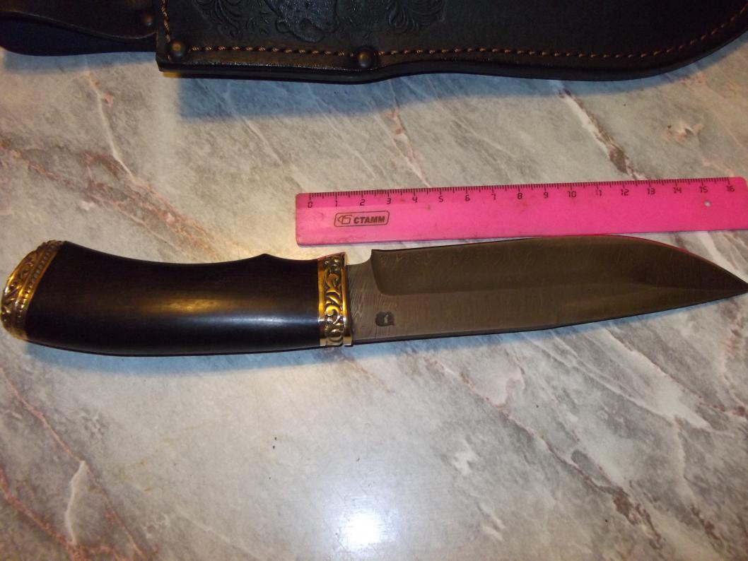 1.Предлагаю вашему вниманию вариант боевого ножа «Каратель» в исполнении без гарды с клинком из кованой углеродистой пружинно- рессорной стали 65Г. Подобные ножи "Каратель" и "Взмах" используются спецподразделениями МВД и ФСБ для работы в тяжелых условиях. Антибликовое покрытие клинка (оксидирование), заточка низ и верхняя передняя часть. Сталь 65Г применяется для изготовления пружин, рессор, корпусов подшипников и обладает достаточно высокой жесткостью и способностью долго сохранять заточку. Исполнение рукояти - комбинация черного граба, гарда латунь. Соединение клинка и рукояти- шпилька диаметром 8 мм до конца рукояти. Этот нож является сделанным вручную высококачественным изделием, которое может украсить любую коллекцию, и может использоваться для охоты, туризма, рыбалки, походов по местам сражений! Made in VORSMA. Не стоит сравнивать этот качественный нож с китайскими «аналогами» из чугуна, покрытыми укрепляющим напылением! Цена пусть-4.500 руб. Характеристики ножа: Сталь пружинно-рессорная 65Г. Общая длина 289 мм Длина клинка 165 мм Ширина клинка 35 мм Толщина клинка 5,8 мм Твердость клинка (HRC) 60-61 ед. Рукоять: латунь, черный граб. Ножны от мастерской "Романа Серкова" 2.Охотничий нож «Шерхан» дамаск. Ручная работа! Черный граб, латунь, герб РФ! Новый охотничий нож «Шерхан» с клинком из кованой дамасской стали.Дамаск имеет великолепные режущие свойства. Рисунок дамаска – «крученый». Кузнец Новоселов. На клинке имеется клеймо. Элементы рукояти выполнены методом литья из латуни, задняя часть - герб России, дерево- черный граб. Соединение клинка и рукояти – шпилька диаметром 8 мм до конца рукояти. Сделано в г. Ворсма, полностью ручная ковка и работа. Ножны из натуральной кожи с тиснением в комплекте.Цена пусть-4.000 руб. Характеристики ножа: Сталь дамасская, пакет ШХ15+ХВГ+У8. Общая длина 270 мм Длина клинка 148 мм Ширина клинка 35 мм Толщина клинка 3,4 мм Твердость клинка (HRC) 59-60 ед. Рукоять: литье латунь, черный граб. Прошу звонить по тел.+семь 927 205 шесть 118 Сергей. Если не беру или сбрасываю-перезвоню сам (не всегда есть возможность разговаривать). Спасибо за понимание. На форуме после 20-00.Но лучше звоните.