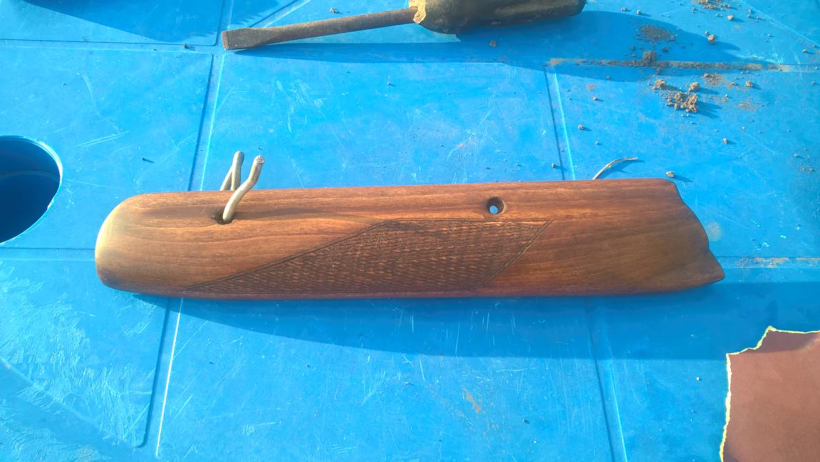 Почти закончил восстановление тоза! усм вскрыл, там все относительно чистое, промыл в керосине, высушил, обильно смазал маслом нейтральным и дал стечь. Под лбом колодки я ожидал увидеть прокладку, но к счастью там ни чего не оказалось, так что ресурс имеется! Рычаг запирания был не доосаже, при доскональном осмотре выявилось, что немного выгнута пружина рычага, она терлась о ствольную коробку, что и не позволяло осадить до конца рычаг и, естественно, из-за этого нужно было доводить рычаг при запирании. Все снял, пружину выгнул, после чего все стало на свои места и работает безукоризненно. Немного подсажены боевые пружины, заказал их из Тулы, придут-поменяю. Далее дерево...старый лак снял с помощью растворителя, облив им дерево, предварительно обмотав бумажным полотенцем и поместив его в пакет. Далее все как у всех....шкурка от 40 до 2000(каждым номером шкурки по 5-7 раз, между которыми протирал влажной ветошью, чтобы убрать ворс), затем покрыл морилков на масляной основе"полисандр" в 3 слоя! Далее пропитка натуральной олифой...первые 2 дня олифа охотно впитывалась(3-4 слоя в день), на третий день уже приходилось убирать лишнее с приклада...последний раз наносил олифу с помощью мелкой наждачки. К моему удивлению уже на 5 день масло полимеризовалось, ветошь, которой наносил олифу, затвердела, на 7 день приклад совсем переслал липнуть к рукам! Финиш буду делать дашиш оилом, заказал уже на ганзе(у продавца полно всяких масел для пропитки,если кому нужны контакты, пишите), а пока идет не удержался и собрал, даже вчера вечером сходил на вечерку, хотя пострелять так и не удалось, но все же ружьем очень доволен-легкое, прикладистое, то что мне было нужно!