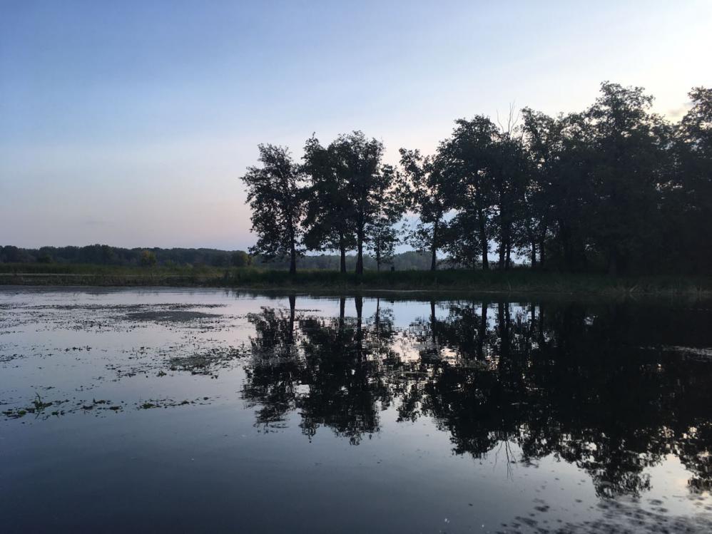 В 4 утра большинством голосов я был послан в задницу и вот мы уже едем на места охоты в 6 утра! На карте большая круглая баклуша на острове, было решено окружить ее и зайти по команде! 2 высадились в одном месте, 3ий поехал объезжать остров! Разошлись, подкрались и начали ждать третьего! Через 30 минут к комарам привыкаешь! Насчитал на баклуше 25-27 уток. Наконец-то на связи по рации оказался и 3ий и сообщил что появится на месте через 10 минут. Пунктуальный, но не скрытный он спугнул уток и они начали кружить вдоль деревьев набирая высоту! Заорав бежим я бросился к воде, естественно споткнулся о ров в траве и упал аккурат близ жиденького камыша! Невнятной кананадой мы добыли 4х чиров и пошли за лодкой чтобы добрать ужин. Собрали дичь, вытащили лодку и пошли на место высадки! Проходя поляну(я шел первым, держа лодку за нос) я честно предупреждал друзей о крапиве, лежачих деревьях, шиповнике, но все равно услышал сзади крики АЙ-АЯЯЙ, АЯЙ, АЙ, БЕЖИИИИИИМ!