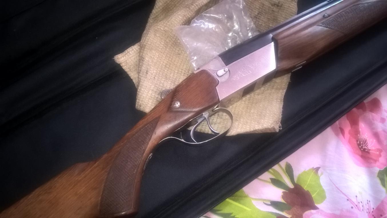 Ружье 2000 г.в. Малостреляно. Он, сколько его знаю, с муркой охотится. Дерево, вроде, бук.