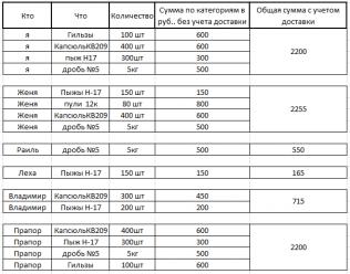 Самарских берете в компанию?Нужно :КапсюльКВ209-400шт,ПыжH17-300шт,Дробь№5-5кг,Гильзы-100шт.Деньги готов переслать(сколько,куда),за товаром сам приеду.