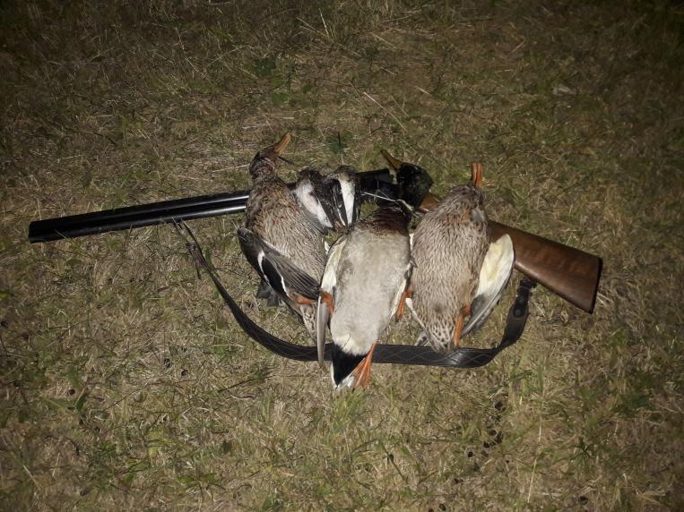 Всем привет! Вчера выехал на охоту пораньше погонять бекасов- нашёл, но что-то не много- пару взял , пару смазал))). Время до зари оставалось ну почему не доехать до любимой баклуши?)- еду и беру там здорового селезня, почти перелинявшего , без косиц правда. На зорьке была вакханалия пролетных ,мелких ,костышастых, набитых карасями по горло , крякашей )))- но ветер и неудачно выбранное место ( в плане именно ветра и отсюда направления снижения) дало мне взять только пару рыбных вонючек))) ...а в целом охота была классной! На фото дичь в порядке добывания)))- ну и совместное фото))) Всем НПНП))