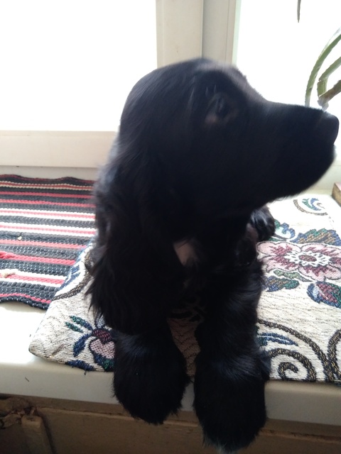 9 щенков: 6 кобелей (2 черно-пегих и 4 черных)/3 суки (черно-пегая и 2 черных)