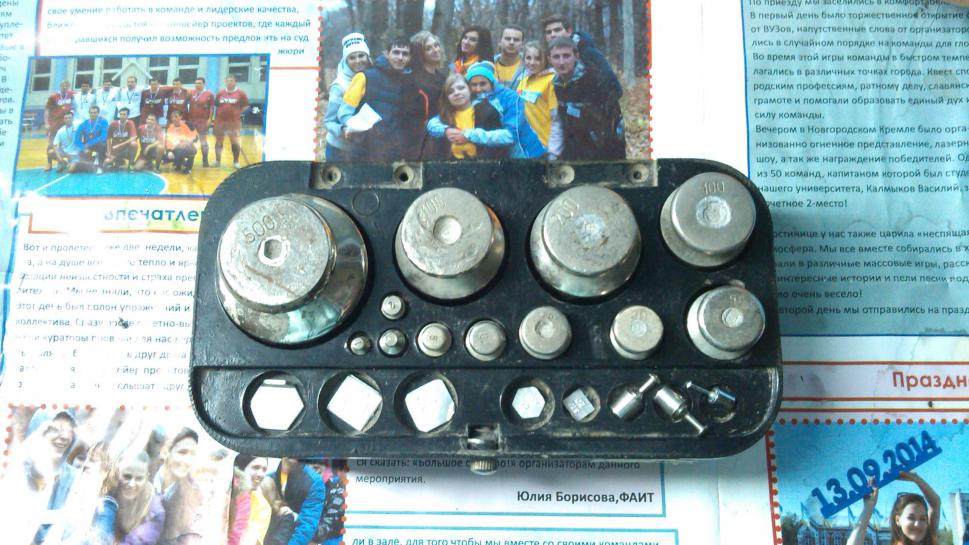 б.у. нехватает пластинок, одна из 200гр гирь имеет поврежд.