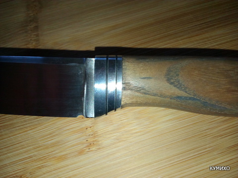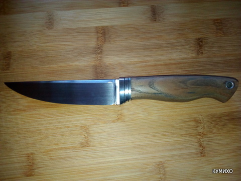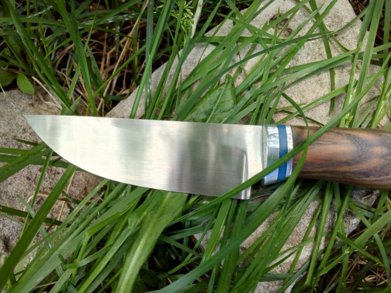 Сталь кованная не ржавеет, долго держит заточку 95х18 ТО Михаила Батурина. Длинна клинка 130 мм, ширина 28 мм, толщина 4 мм. Больстер латунь битый камень. Рукоять натуральное дерево Ясень, пропитка датское масло . Монтаж всадной на эпоксидку. Бритвенная заточка. Покрытие клинка ручной сатин . Твердость по Роквеллу 59 ЕД.Ножны натуральная кожа , свободный подвес. Прямые спуски от обуха , сведение 0,2 мм. 3200 р.