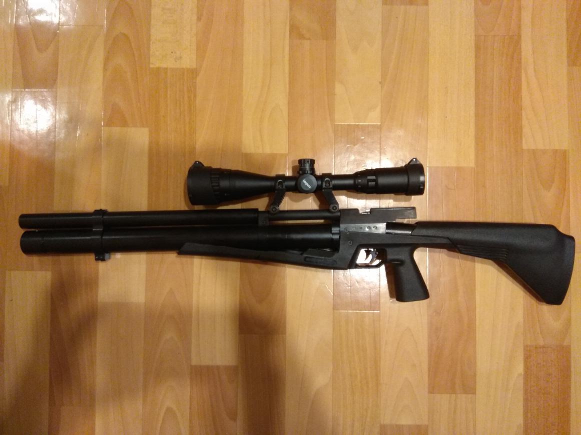 База иж 60 стальная коробка, кит снайпер, резервуар 430мм увеличенный с редуктором, прицел Липерс 3-9х40, есть ЗИП резинок и клапан, в подарок банка пулек JSB 0,87гр, которые винтовка с удовольствием кушает.