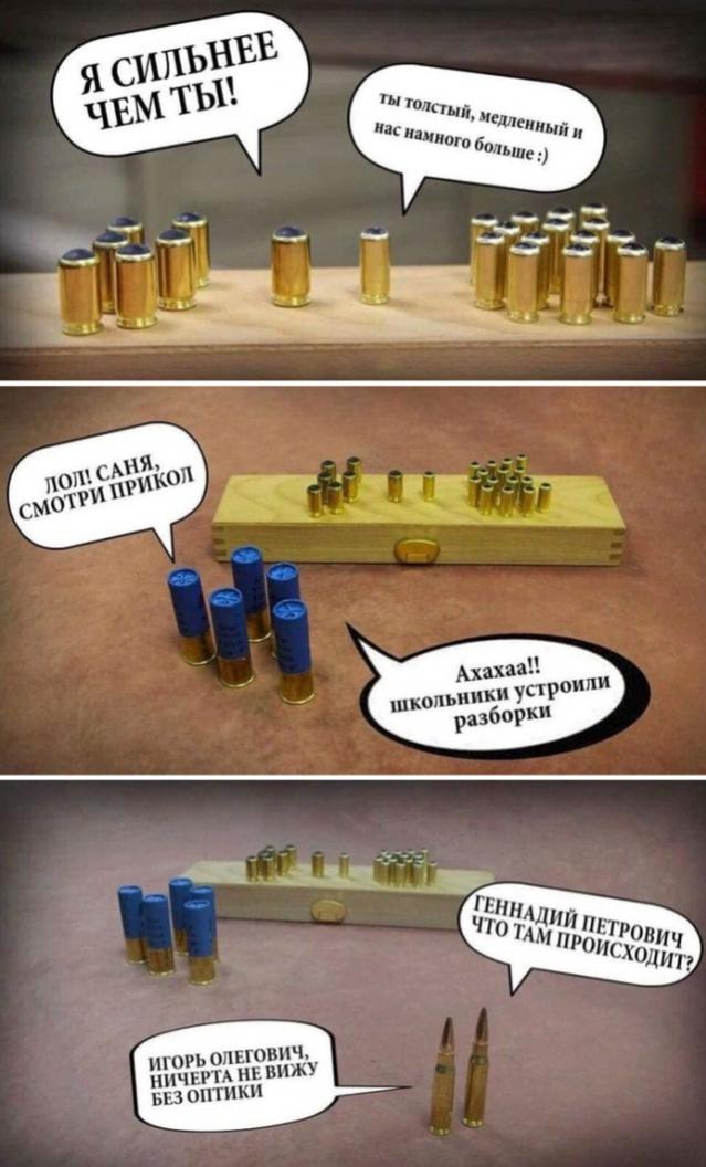 Судья: И как вы могли, охотясь на обычного кулика, подстрелить очень редкого желтопяточного кулика? Подсудимый, стоя к залу спиной, наклоняется к судье и приглушенным голосом: Я отвечу, только скажите — моя жена сейчас на меня смотрит? Судья: В зале много женщин — откуда я знаю, которая ваша?! Подсудимый: Вот и я не знал, кто из этих бл*дских куликов желтопяточный! |