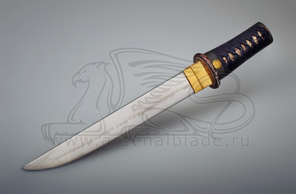 Продам коллекционный нож, полочник G.Sakai, Bosen Enkuto S.P Сталь SLD (SKD-11 / Laminated SUS-405) 3 слоя. Твёрдость 63. Общая длина 33,5. Длина клинка 21,5. Толщина обуха 5. Сечение клинка - Convex Grind. Материал рукояти - бук. Ножны: дерево чёрный бук, латунь, кожа. Коробка и сертификат в наличии. С производства снят. В интернет магазинах в продаже есть только укороченные версии с длиной клинка 16,5 см., цена на них колеблется от 14000 - 27000 рублей: