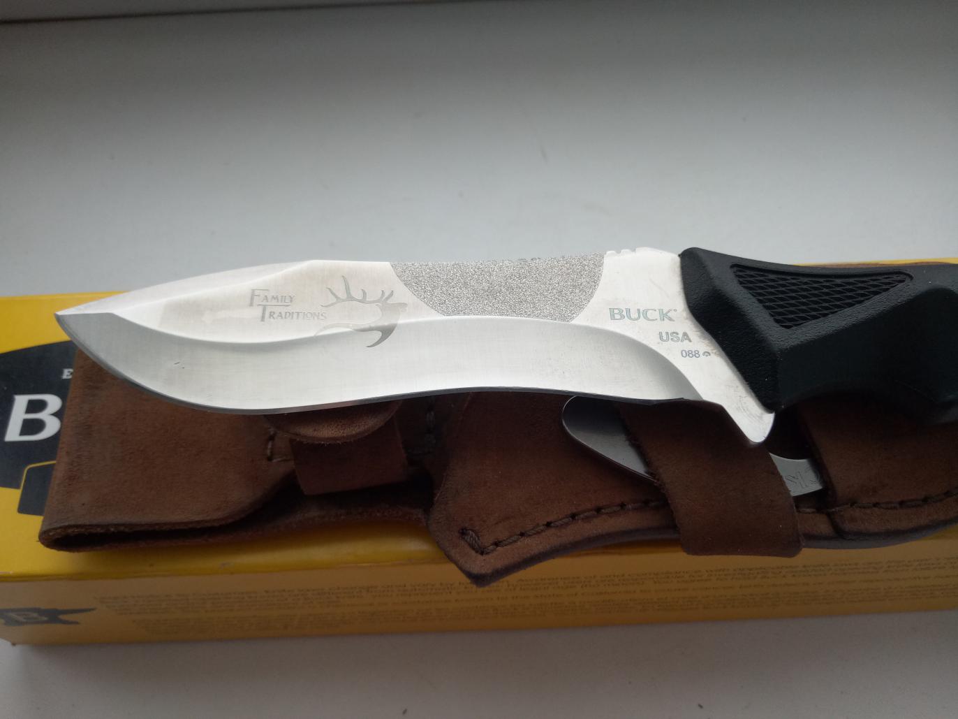 1. Buck ErgoHunter Adrenalin Pro S30V 0088RWSHH, закалка от Боса. Ножны чуть затерты, сам нож не использовался. Коробка, сертификат в наличии. Цена: 9000 рублей.