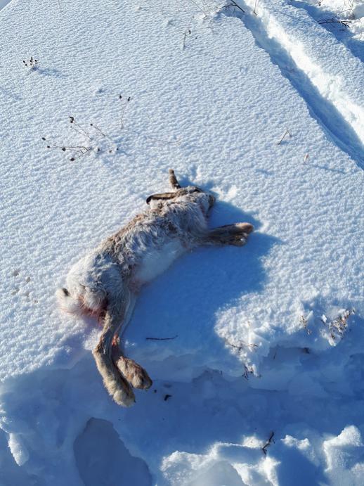 Вот и я выбрался на выходных в новые угодья. Порадовали. 19 приехал к 9 часам, ветерок хороший дул (хотя в тех местах по наслышке, ветер дует даже в штиль(?)). Собрался в путь, собачку отпустил (лайка), присел ремешки на лыжах убавить, сижу значит так вожусь, и краем глаза замечаю в пяти метрах ушастого (собачка подняла), тот в кусты, я в попыхах бам-мимо. Решаю его обойти с другой стороны (собака за ним пошла, но очень медленно, тонет в снегу, одни уши торчат), подхожу значит к заветным кустам, а там еще два зая подымаются (такое ощущение,что где то в тундре), и не торопясь так по кустам прыг прыг. стрелять не стал, не удобно было или может даже как то растерялся. Обхожу кусты по кругу, смотрю, а на снегу под деревом зая мой лежит, притаился хитрец, бац есть контакт(по лежачему то вроде и не красиво, но зайчатинки то охота). Все это прошло примерно минут за 10-15 как приехал. потом мы с собакеном пошли изучать новую местность. Кстати не одного подъема да и следов больше в тот день не видел.