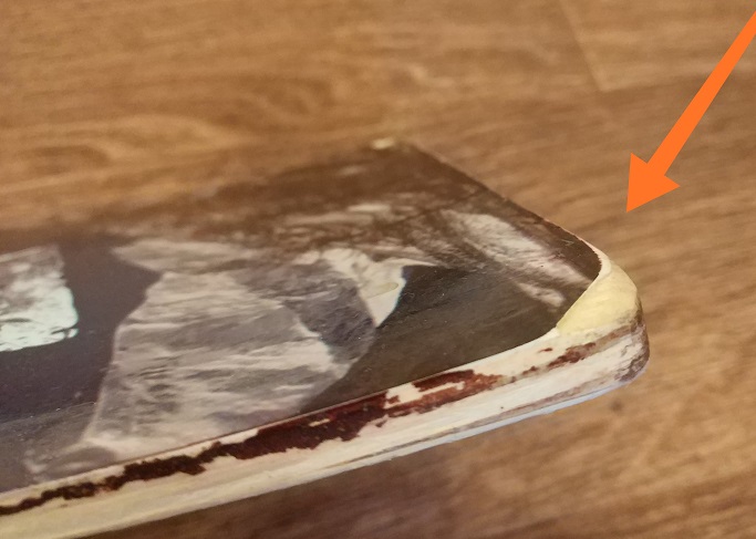 1. Прямо-таки щепами отваливалось дерево с бортов лыж (оранжевым - как было, зеленым - как скруглился борт):