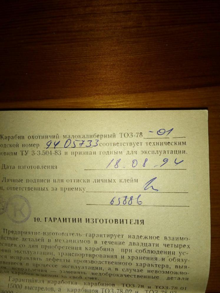 Товарищ продает карабин нарезной ТОЗ 78-01, 94 года выпуска.