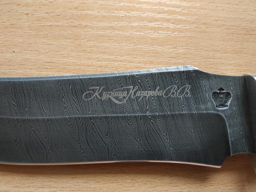 1.Нож Мангуст из дамаска кузница Назарова.Дамаск — это высокоуглеродистая сталь, с содержанием углерода до 1,3%, обладающая превосходными характеристиками, нередко приближающимися к свойствам настоящего булата. Процесс изготовления дамасской стали известен и достаточно прост в разговорах и на бумаге, но кузнецов, кто изготавливает дамаск с феноменальными свойствами очень мало. И весь секрет дамаска — именно в кузнице, и не каждый «нож из дамаска» обладает теми качествами, которые присущи этому металлу Суть получения сварочного дамаска такова: собирается пакет из разносортного металла с различным содержанием углерода, посыпается флюсом, нагревается в горне и куется, по мере вытяжки брусок разрезается поперек, опять складывается в пакет и операция повторяется, и так несколько раз. Число слоев может доходить в итоге до десятков тысяч, но оптимальным, на наш взгляд является число примерно в триста слоев. 4900р. 2.Нож Нерпа из подшипниковой стали 110Х18 кузница А.Бирюкова.Нож и ножны изготовлены на заказ .Что из себя представляет сталь 110х18? Как и другие виды стали, марка 110х18 представляет собой сплав железа с углеродом. При этом она относится к категории нержавеющих, поэтому изначально использовалась для изготовления хирургических инструментов и подшипников специального назначения. Также такой материал называют еще и «ножевым», потому что именно из него делается большое количество холодного оружия самого разного назначения. Причина подобной популярности кроется в том, что в таком составе процент содержания углерода очень низкий (всего 1,05%) и практически не наблюдаются вредные примеси. Основным же элементом в данном случае является хром, что повышает полезные характеристики, в особенности прочность, износостойкость и т.д. Цена 6500р. 3.нож из австрийской стали К340 кузница А.Бирюкова.Изготовлен на заказ.К340 – холодноштамповая инструментальная сталь фирмы Böhler (Австрия), полученная методом электрошлакового переплава ЭШП. Технология ее производства защищена патентом BOHLER K340 ISODUR®. Область применения: режущий инструмент (матрицы и пуансоны), пробивной и вырубной инструмент. Холодноштамповый инструмент для волочения, глубокого волочения и вытяжки, чеканный инструмент, инструмент для гибки, инструмент для накатки резьбы. Отрезные лезвия, измерительный инструмент. Сталь К340 — это аналог известной штамповочной стали Х12МФ. По характеристикам превосходит стали AISI A2, S7, D2. При изготовлении используется технология электрошлакового переплава, за счет этого в стали содержится минимальное количество примесей, что значительно улучшает её свойства. Отличается очень хорошим резом и хорошо держит режущую кромку. Однако, в отличие от Х12МФ, она еще меньше подвержена коррозии и приближается к нержавеющим сталям за счет добавления молибдена и ванадия и чуть меньшего содержания углерода, чем в Х12МФ. Сталь также содержит редкоземельные металлы - ниобий. Благодаря своему химическому составу сталь обладает более однородным распределением карбидов. Карбиды мельче, чем в составе сталей с 12-процентным содержанием хрома. Химический состав стали К340 в %: C Si Mn Cr Mo V Nb, Al 1,1 0,9 0,4 8,3 2,1 0,5 + Преимущества: Очень высокая твердость. Высокая износостойкость. Высокая ударная вязкость и пластичность, обеспечивающая широкий спектр областей применения. Улучшенная обраба