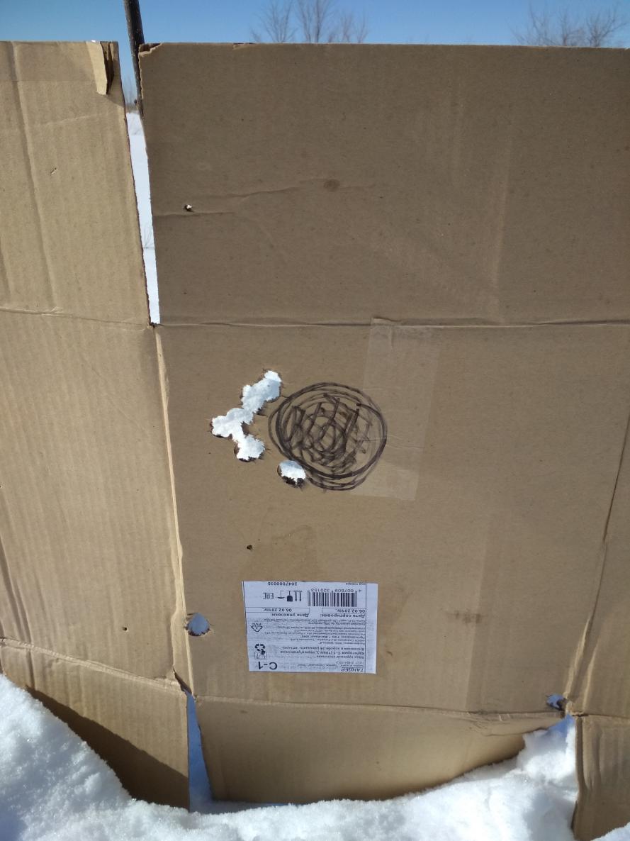 Отверстие ближе к центру - выстрел друга из моего ружья. Он правша - ему было удобнее стрелять видимо.
