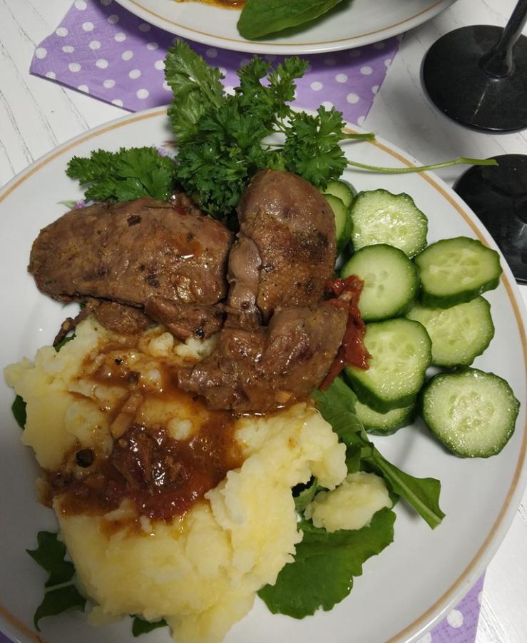 Ну и утка! Гуску срезал и ранее. Но теперь все чаще окорочка))) и грудку срезаю. Тут делал так: замариновал в оливковом масле, добавил перец, соль, чеснок. Обжарил, налил 100 гр гранатового вина (оно только и было) и тушил на медленном огне минут 40. К картошечке свежей, да с тем же вином - ум отъешь! ))) Всем приятного аппетита!