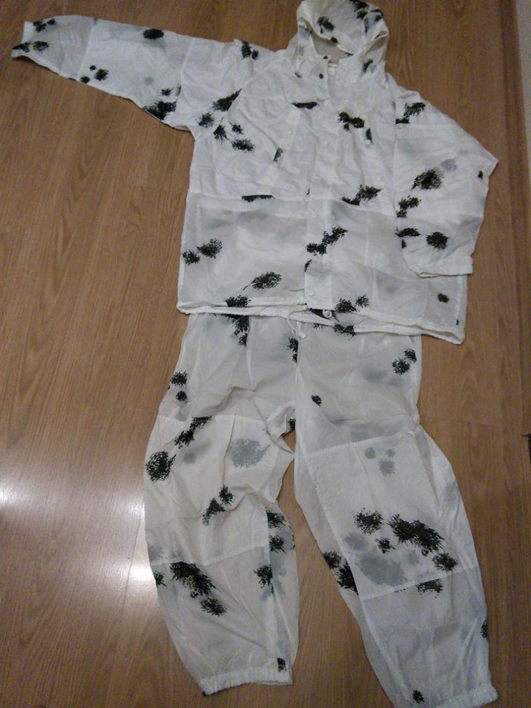 3. Зимний маскировочный костюм «Клякса» производство Сплав. Куртка расстегивается, капюшон утягивается.