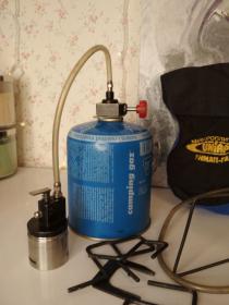 Комплект трансформируется в простую горелку сверху на литровый баллон (фото 2), устойчивую горелку с отражающим экраном на складной треноге (фото 3), горелку на 5-литровый баллон старого образца (фото 4). Можно с этого баллона переливать в другие с помощью шланга из комплекта (фото 5). Переходник на 5-литровый баллон нового образца у меня есть (самодельный), но не предлагаю. Он мне нужен самому.