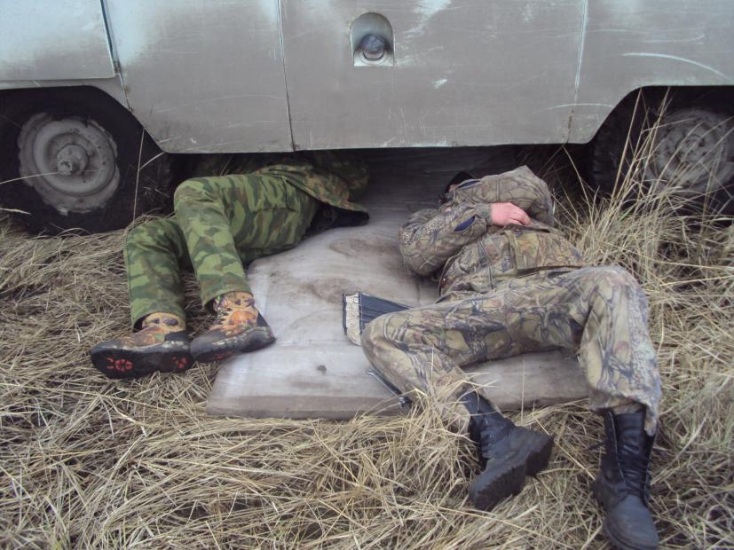 пишу отчет по открытию Тольяттинских. По приезде на место все были заняты очень важным делом, фото прилагаю. В этот день не было взято ни одной птицы!19.04 Сегодняшняя вылазка тоже не дала результатов: сильный ветер, снег, дождь, град короче все прелести погоды и в завершении слепящее солце!