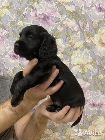 Продаю алиментного щенка спаниеля от моего кобеля. Рождён 17.10.2021. Цвет чёрный, на груди небольшое белое пятно. Похоже, копия папаши вырастет. Хвост не купирован.