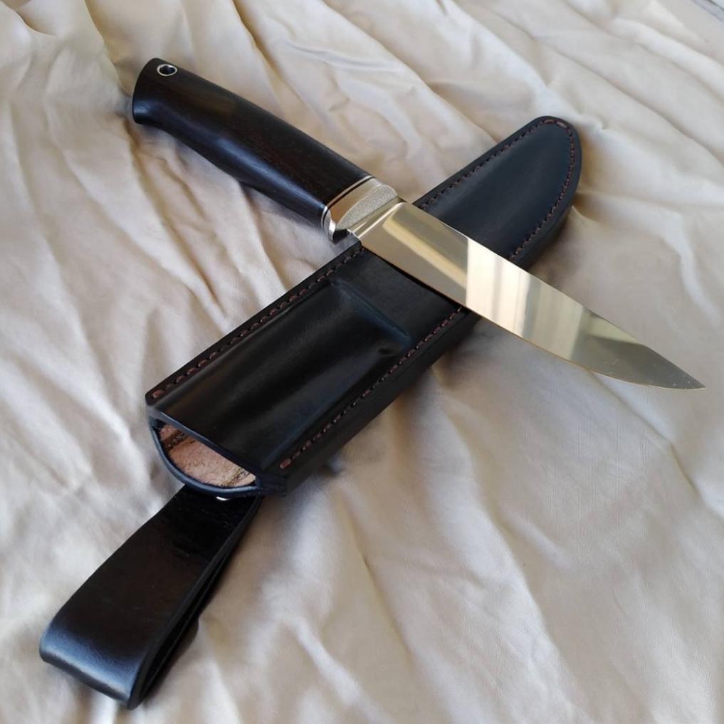 250х127х27х3.5, спуски прямые от обуха в 0.3, сатин по полировке, обух скруглен,заточен вручную на 36º. Рукоять титан, g10,пламенный эбен, тунговое масло, хвостовик 75, фасадной монтаж на эпокси-титан. Ножны кожа РД, свободный подвес. Есть тема мастера, кому интересно скину. Цена 9000р.+ почта. т 891712738 пять девять.