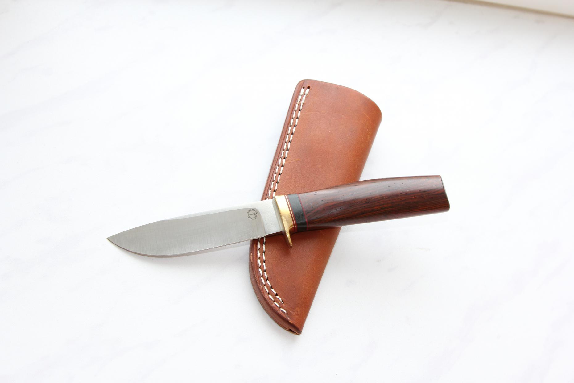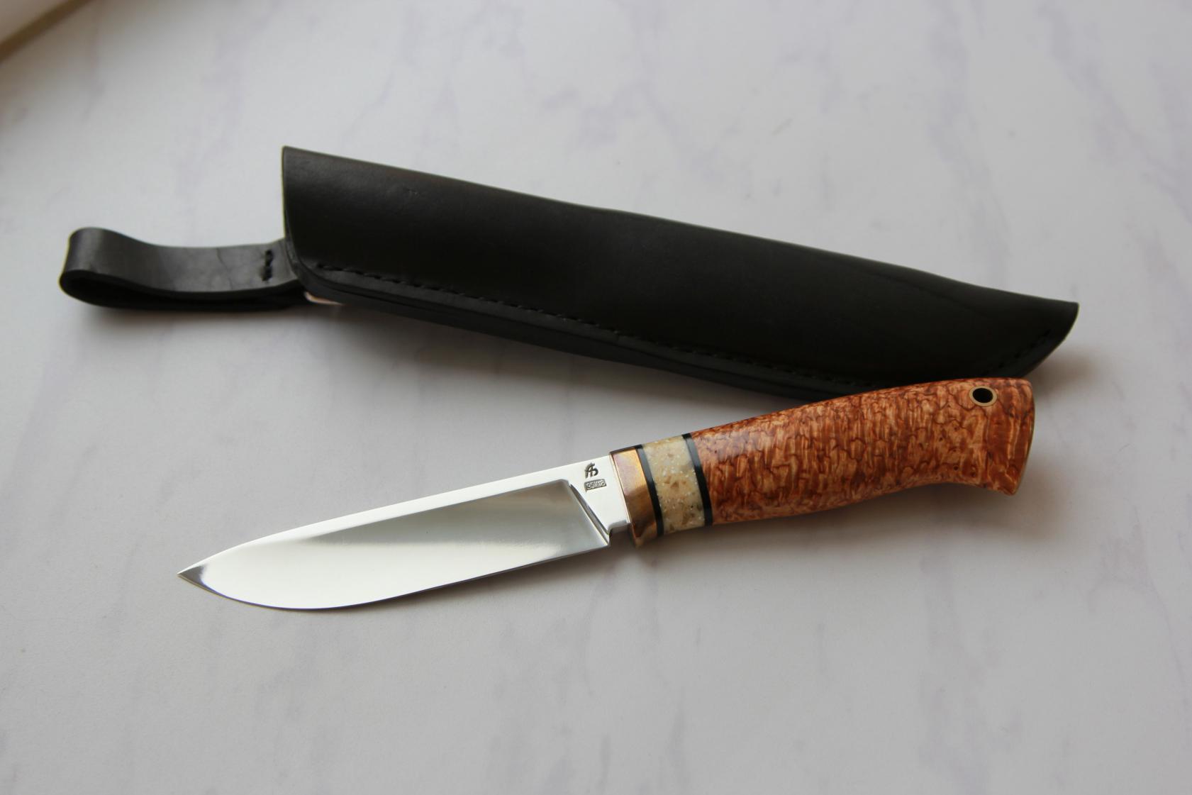 Сталь 65 нержавейка, посредственная на сегодня, тем не менее этим ножом шкурились и лоси и кабаны, думаю много авторитетных свидетелей охотников найдется, подтвердить мои слова. Нож с фиксатором на пятке, не имея выступов_верткий в руке удобный в работе. Ножны 1996г., сшиты для ношения на пояснице, Очень удобно особенно в машине. НО для того чтобы за многолет любимый нож сохранился, ему обязательно нужен помощник «всякий».