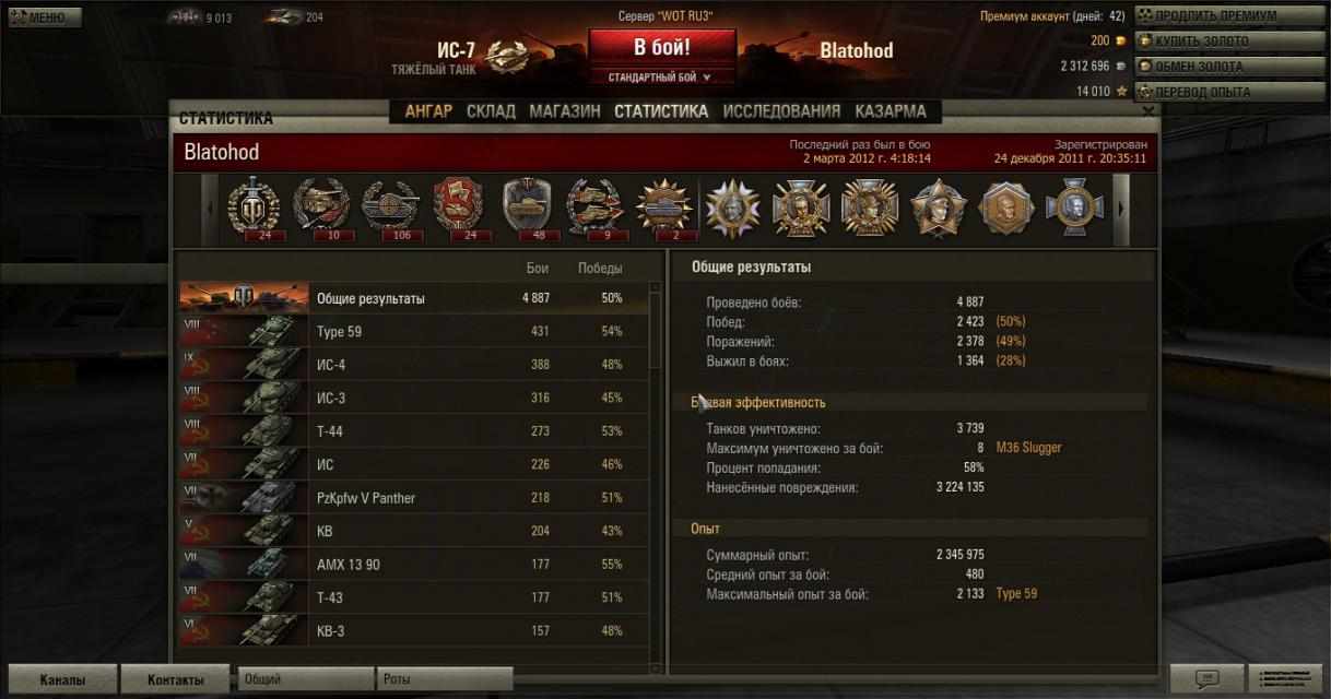 Блин я тоже решил попробовать и зарегился 24.12.2011,сейчас уже почти 5000 боёв.
