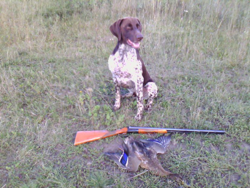 Поехали сегодня с собакой в поле,на перепела.Пес отпросился попить сбегать на пруд,что на краю поля.Слышу,на пруду шум какой то.Через некоторое время возвращается пес,в зубах утка,еще живая.Подранка в кустах поймал.Каждый год такое бывает,но обычно уже по осени.В прошлом году четырех принес,в этом пока первый.