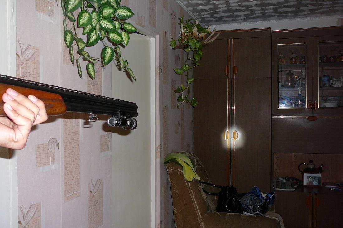 Я не правильно выразился, не диаметр, а расстояние между центрами диаметров. От этого фонарь светит ниже оси ствола и не паралелен - на коротке нормально, чем дальше тем больше отклонение пучка света. |