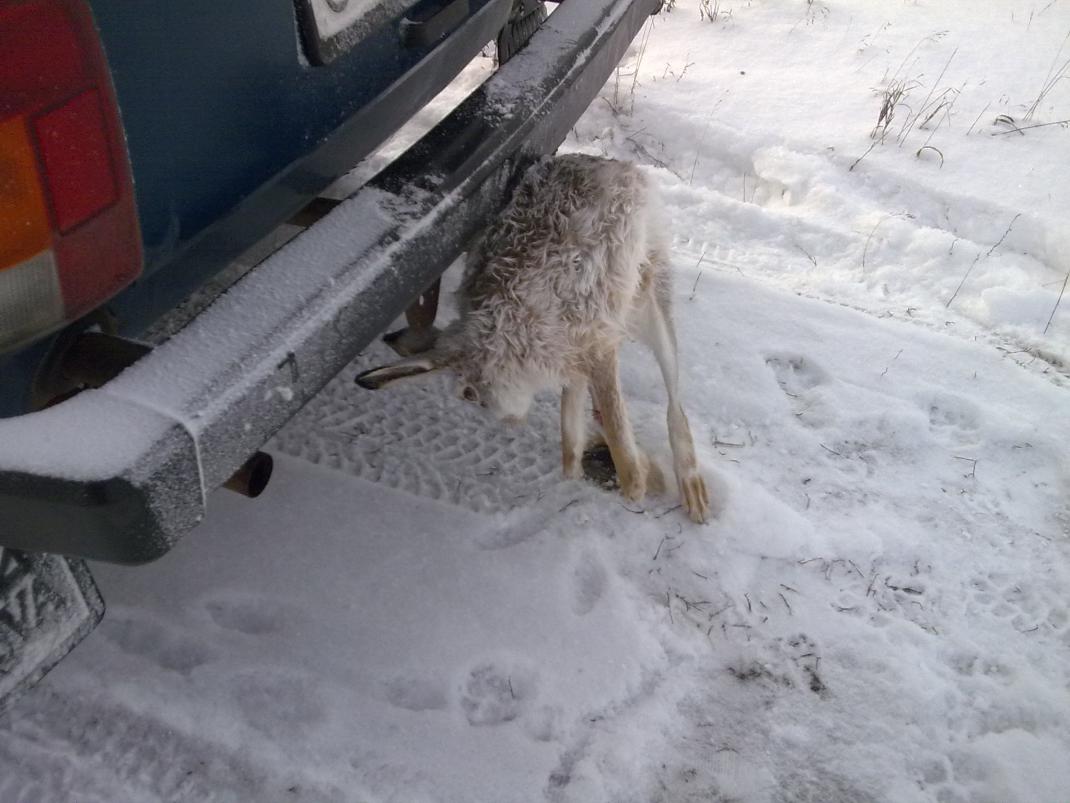 Вчера неплохо ноги потоптали.След как на картинке.Первый был взят с лежки.Второй крутил по бурьяну,но вышел на дорогу.Так как ход его немного был расчитан,то и его в багажник.А потом понаехало много народу,которые типа тропят,но на машине и все следики перекатали.Вообщем,поохотились отлично, норму выполнили.2-0 в нашу пользу.