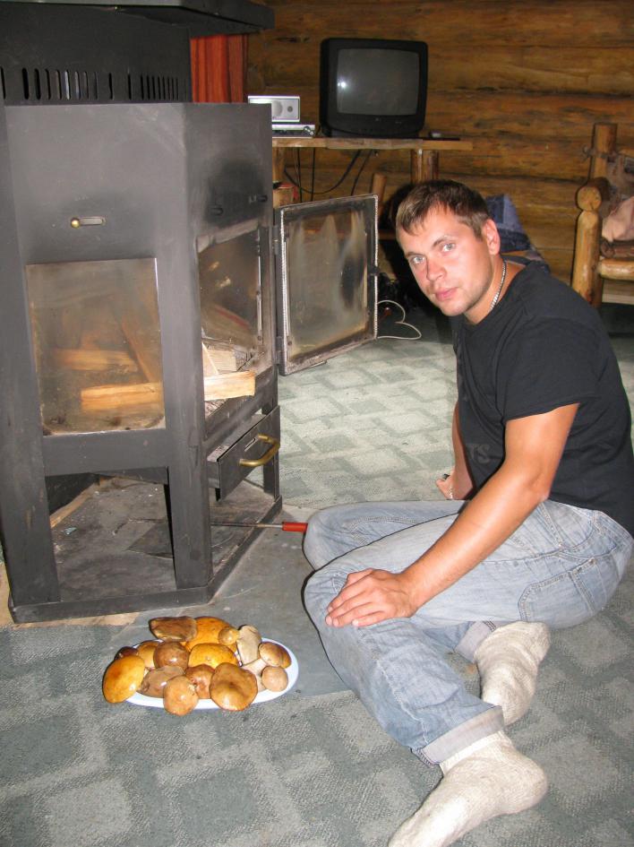 А это вечером возле печки с грибами которые собрали недалече от дома.