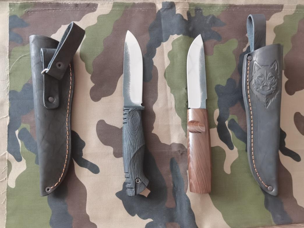 Новые ножи приехали от моего мастера. В свободное от индивидуальных заказов мастер выпустил недорогую серию. Сталь Х12МФ грамотно оттермичена, ручки на выбор, дерево любое, резина. Цена 2500р с чехлом. Пока только удалось порезать мороженное мясо, ребра козлика. Орех на ручке эстетичнее, но эластрон практичнее. Заказ можно подогнать под ваши задачи. Кому интересно, звоните, говорите, что от меня.. Т. +79049075439 мастер в Новгородской области. Отправляет почтой.