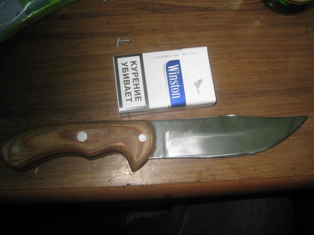 нож для охоты это очень не просто.Вот этим сегодня рубил защиту от ваза.Рубилась с трудом,но нет задиров.А размер?Только на кабана,как пишут в форумах.