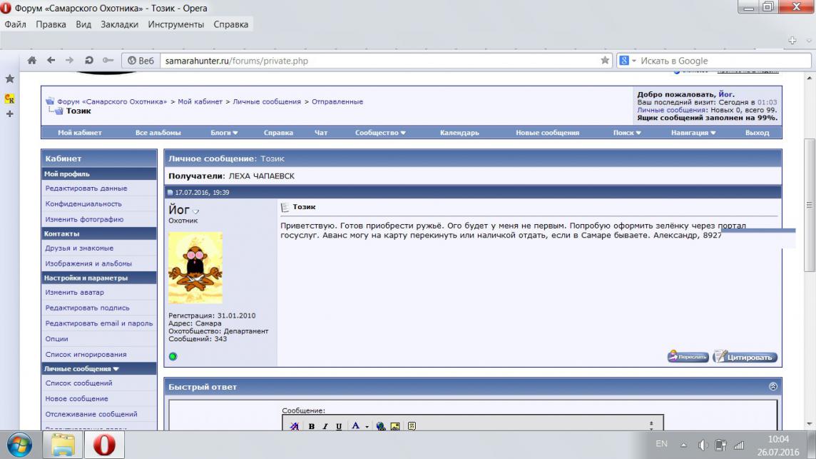 Доска - сайт с объявлениями, где есть раздел с оружием.
