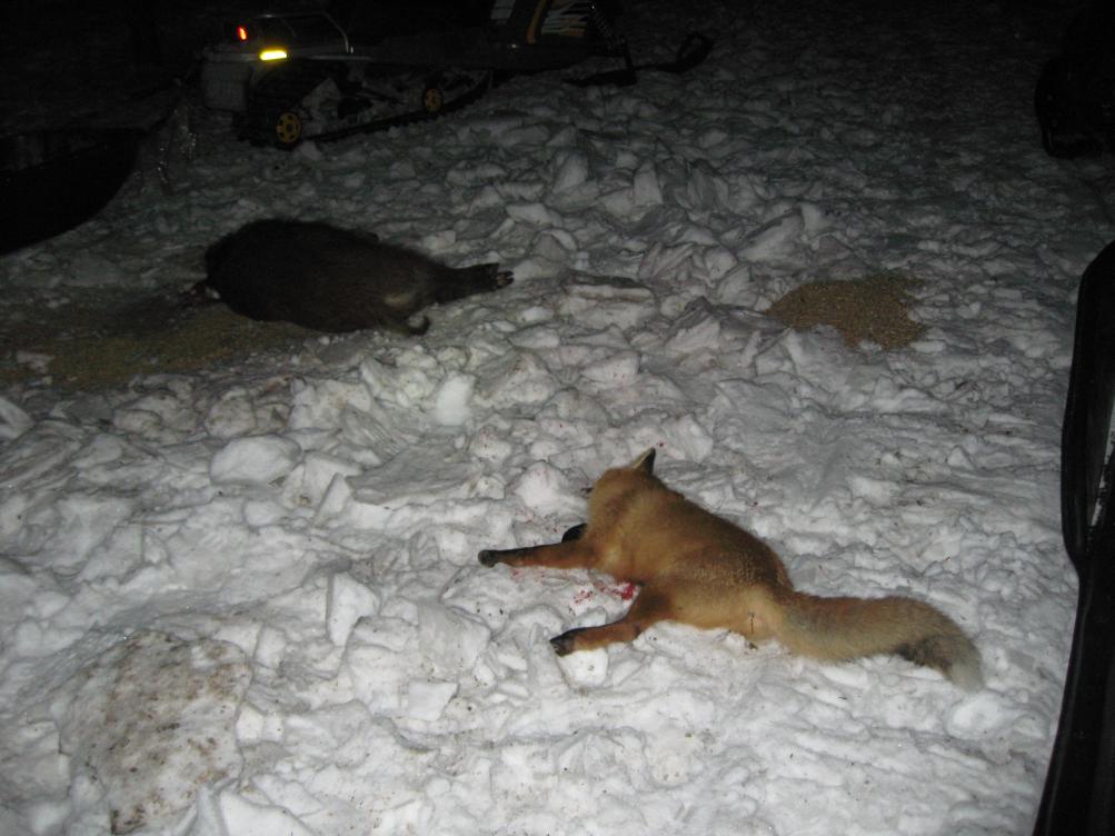 Василий31, DEMON, sergeyst1, Спасибо! Про лисовина: стрельнул-то я рано, думаю дай ещё посижу может снова выйдут, а через час смотрю лисы начали кучковаться, видно запах крови привлёк, причем я уже и свистел и гакал - им по хрену, все ближе и ближе к моей гастрономической хрюшке... Ну а когда самая "умная" подошла почти вплотную, я не выдержал (вдруг бешенная), хоть и жалко было тратить дорогой патрон, пришлось... В назидание другим, ИБО не фиг зариться на чужое!! |