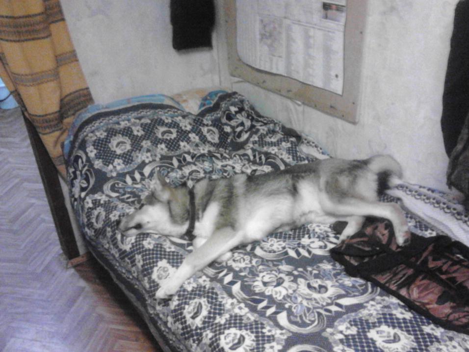 Амурчик отдыхает в охотничьем вагончике перед тяжелым охотничьим днём, наглость его терпелась только два кадра, потом полёт на пол на фуфайку.