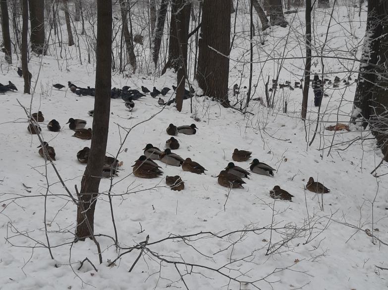 На фото, вроде, все кряковые ! Они у нас круглый год живут. Им в декабре тяжело, мотаются с Волги в город попрошайничать у жителей. Так и перезимовывают, в голоде и холоде.