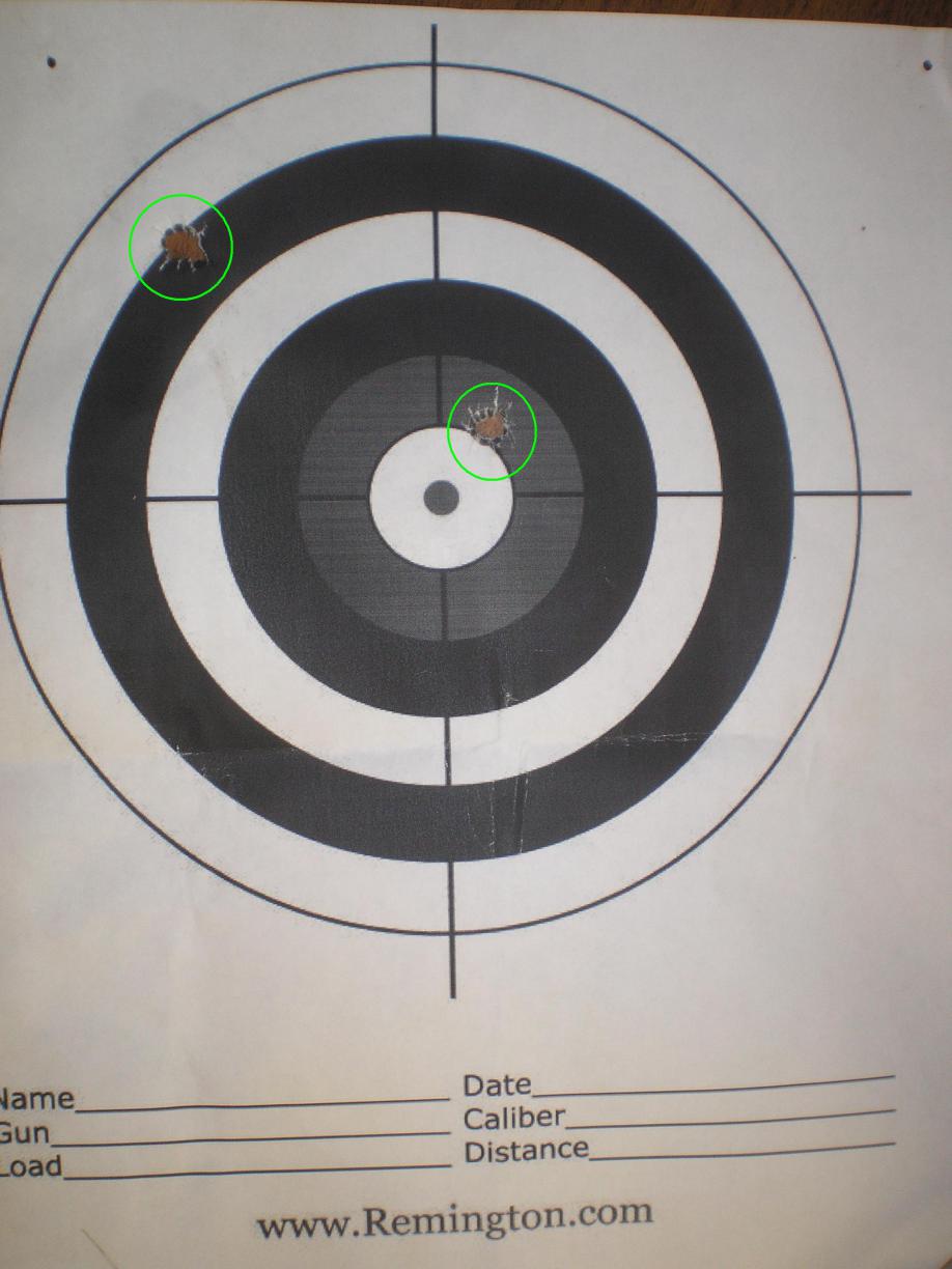 . Мушка как раз целиком скрывает мишень. Уж не говоря про более дальние дистанции. На первой картинке два моих выстрела. А на второй, прикол, парень можно сказать первый раз в жизни оружие держал в рукух. А вон как сумел