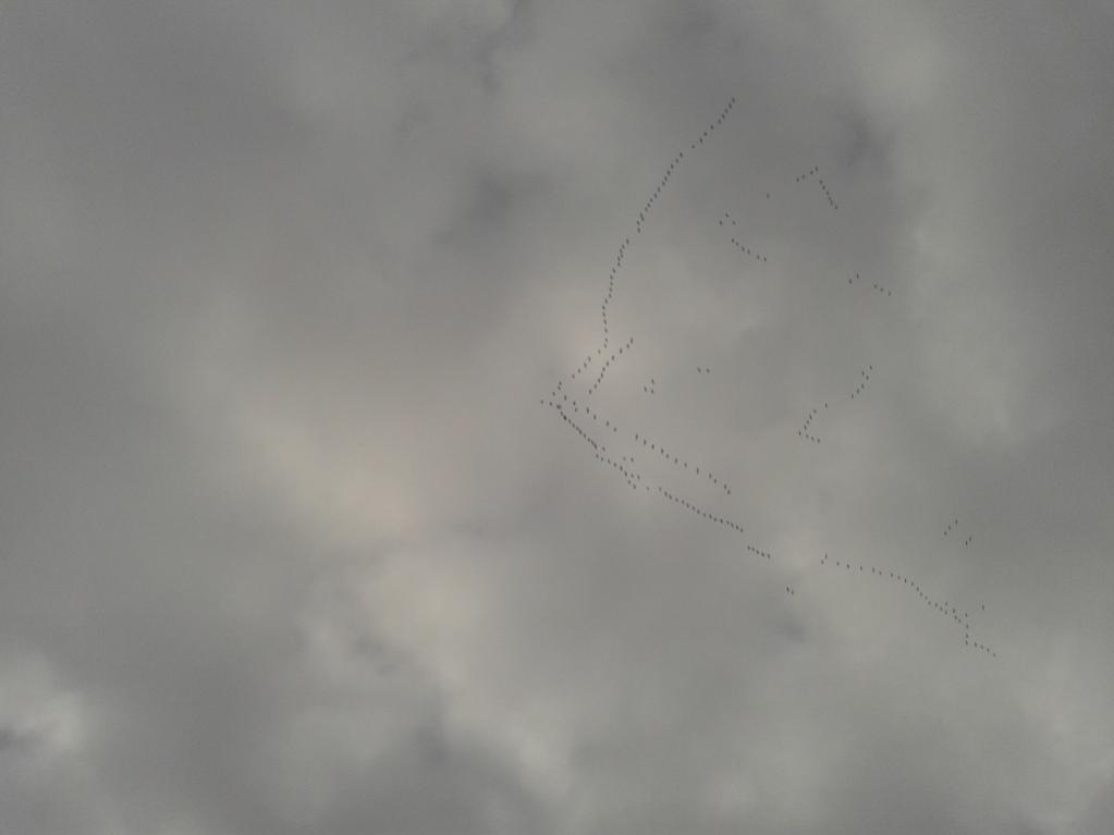 Летят высоко. Правда 1 стайка села на поле (в бинокль видно было). Ждем открытия.
