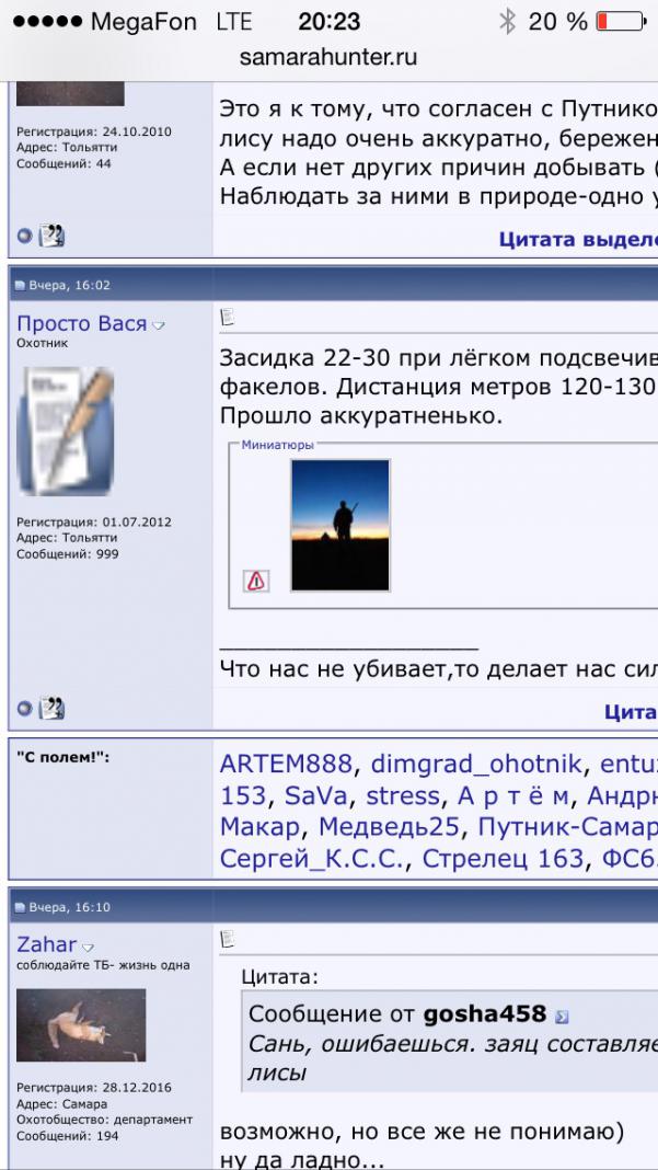 Что то не пойму . С разных компов смотрел . Чуть ли не у половины форума аватарка добытая недавно Просто Васей лиса на факелах. )))Это новый тренд?) Я что то упустил))?Причем в теме охота на пушных где отчет Просто Васи , фотка поменялась, с лисой фотки нет там больше. За то она у всех на аватарках)))