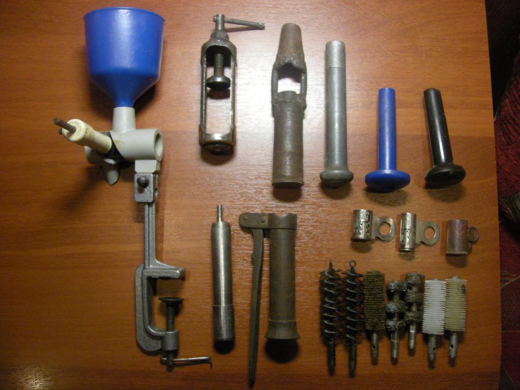 В продаже - пыжерубка 12к, ершики, воронка (для засыпки дроби и пороха), устройство для зарядки патронов.