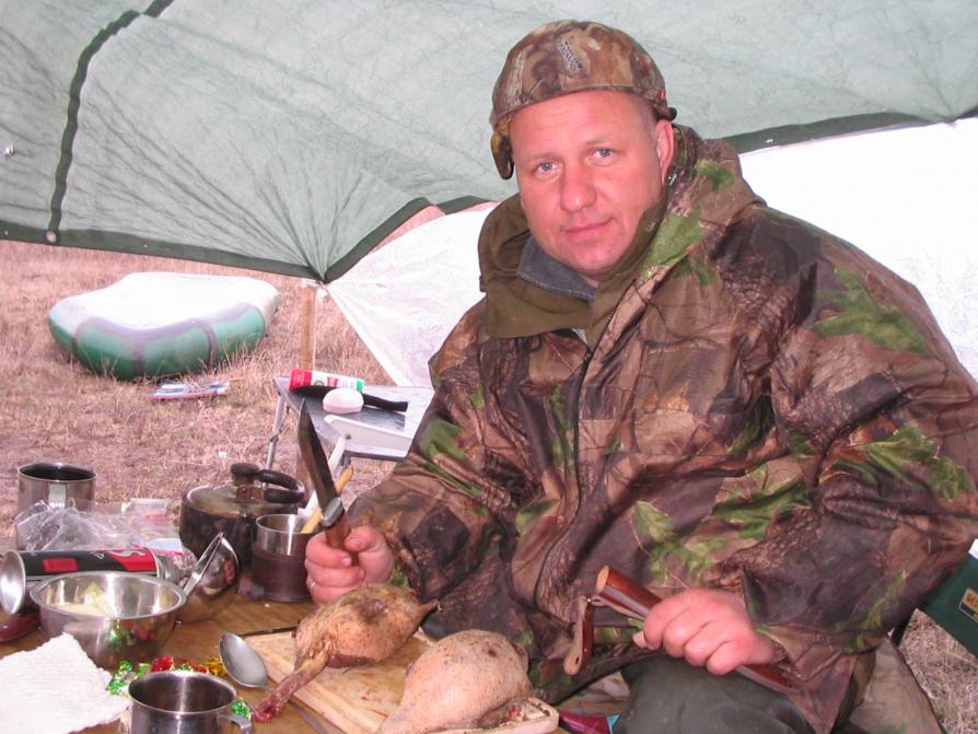 В субботу утки не было. Периодически в стороне пролетали небольшие стаи гусей, достаточно высоко. Правда один раз группа из нескольких гусей прошла низенько над расставленными профилями, но именно в этот момент все сидели вокруг костра и только пощелкали зубами.