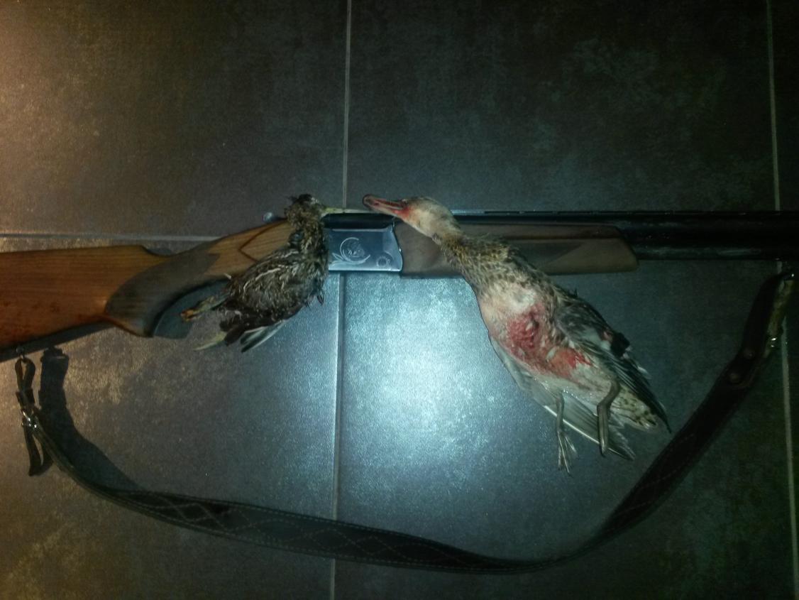 Было 2 спортивных дуплета первый чисто.. второй улетел подрастать, да лужа фартовая оказалась выводок тусовался там голов 14, случайно спалились они ни зачто не подумал что там будут , перед этим минут за 15 я с этой лужи 3 выбил -первый осечка, ну как осечка капсуль пшик а выстрела нет видать с порохом не достача
