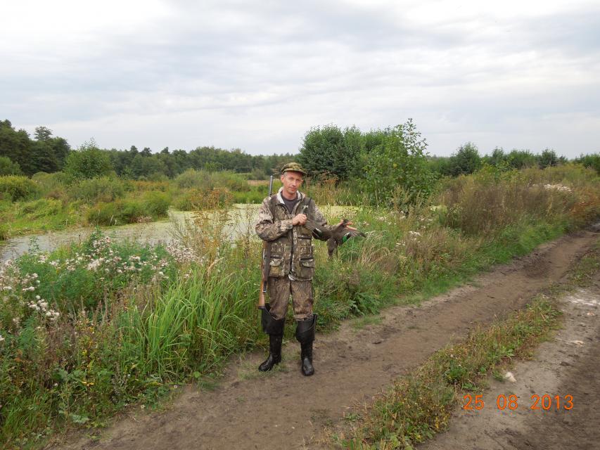 с другом рванули седня на вечерку. цель-добежать, глянуть до любимого болота. там бобры запрудили и такой шикарный розлив получился, много лет пользуемся и спасибо им говорим)). по пути мимоходом добрали подранка, которого вчера не нашел, на крыло не смог подняться. спустя 15 метров еще одного выбили из стайки. до болота дошли и охренели-вода упала, жизни нет. видимо все таки кто то добрался до бобров. ну и соответственно утки тоже нема... домой приехал-лабрика познакомил с утей)) сначала всеми лапами упирался, подходить не хотел. потом разнюхал. пару раз бросил ему-принес, но только в обмен на другую))