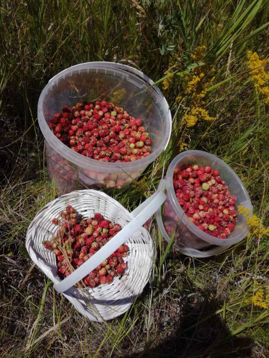 Земляники в этом году просто невероятно много. Везде . В прошлом году, осенью, ставил капканы ,увидел земляничник, место приметил . Три дня назад нарвал по дороге на пляж с ведро, а больше мне и не нужно, так как урожай домашней клубники тоже удался..да и вообще ягоды море...сначала жимолость, клубника, сейчас малина... вишни очень много...абрикосы набирают вес...боюсь морозилок не хватит