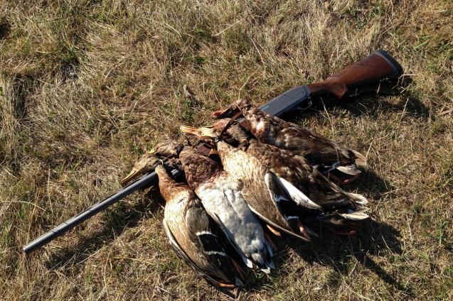 Сегодня совершенно случайно нашел огромную лужу разлитой из водовода воды- ( китайцы капусту поливают) обратил внимание на большое количество утиных линных перьев и пуха ...по берегам было очень много куликов, но мазал ужасно в итого взял только одного)))- все-таки семерка крупновата....Решил остаться на вечерку- солнце село и минут через 15 началось такое !!! чего просто невозможно было представить...пер один крякаш партиями....но так как прятаться было просто негде я стрелял лежа....итог- сбил четырех нашел двух( как назло оставил фонарик в машине а пехать до нее километра три было)- завтра с утра пойду собирать)))