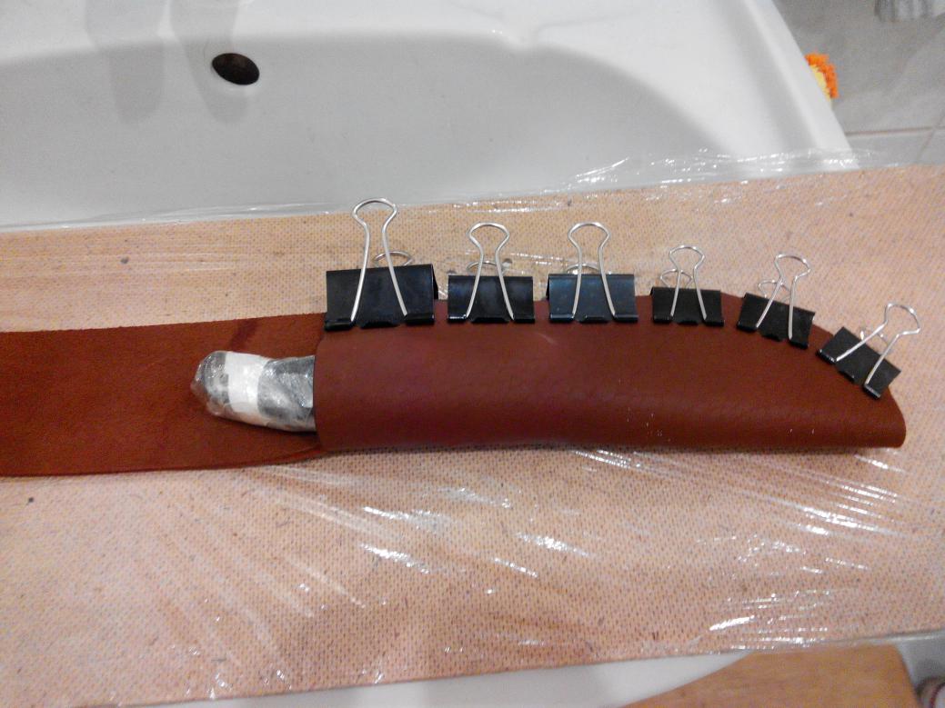 Надеюсь, хозяин ножа знает про усадку ножен по ножу на мокрую?)).