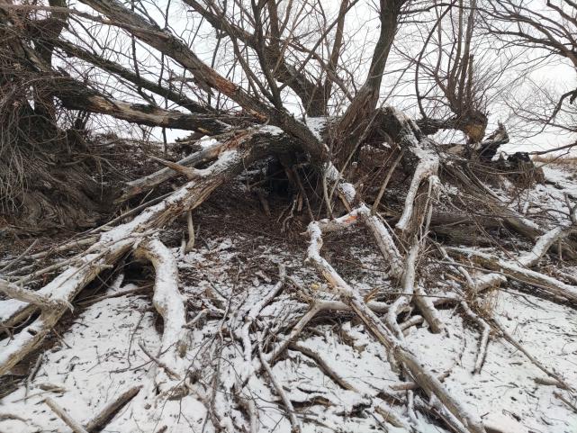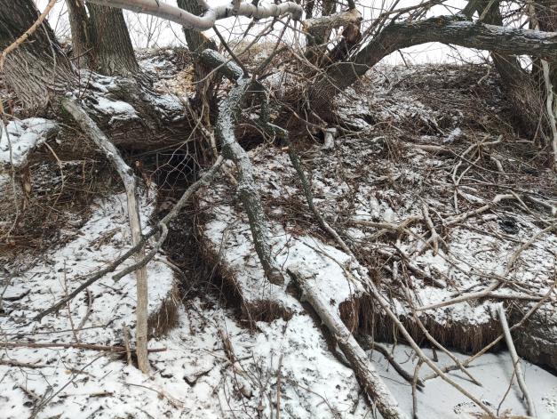 Три дня, как стояли мои капканы и явно "ни в том месте" (проверял каждый день). Ну нет там выхода из под воды! Кругом лёд. Всё обошёл. Выходов нет, а стружка на льду есть. И погрызы недалеко от водоема свежие есть. Ну, я и поставил - то ли на продухах, то ли на дневных норах... Так и не понял, но ни следов по свежему снегу за два так и не появилось, ни каких-либо намёков о бобрах рядом. Я то, наивно решил, что раз из подо-льда он не выходил, когда нагрыз свежего сверху, то по-любому и вопреки всем книжкам вход в его хатку-нору не в воде,а с суши. Вот и простая охота, вот и "взять бобра попутно...". Может снегопал тому виной?!)