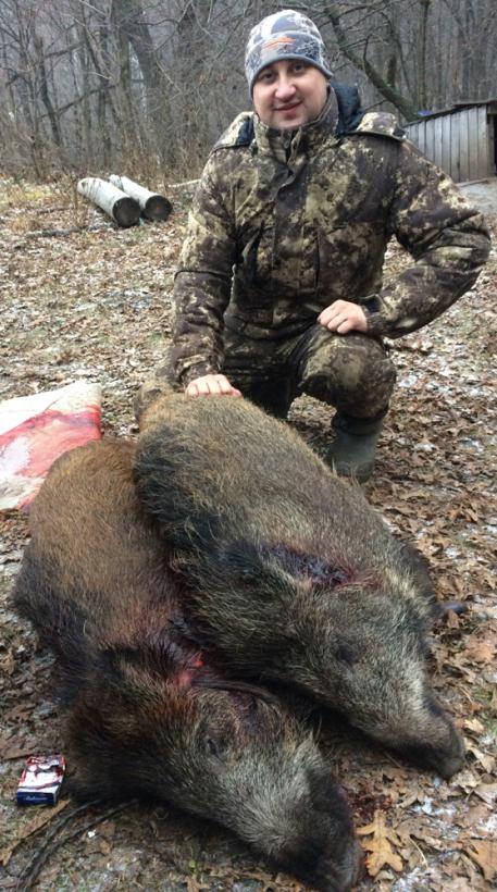 А тем временем мы провели очередную загонную охоту в Самарской области. Три шикарных загона и не менее шикарных трофея: секач и два подсвинка. Стрельба велась с Тигра (7,62х54) и ИЖа 27. Отличная работа собак и стрелков. Секача добирали вместе, поэтому на фото и мой карабин)))).