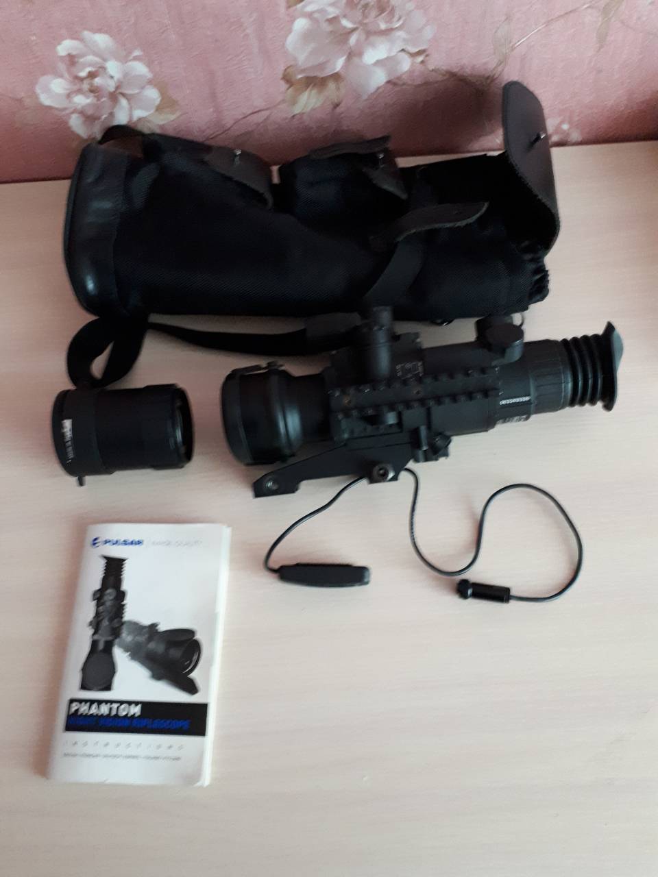Комплект на фото сам прицел, предобъективная насадка 1,5 крат, выносная кнопка, в кронштейне отсутствует 1 болт крепления утерян. цена 55 т.р. тел. 8937О71Ч917.