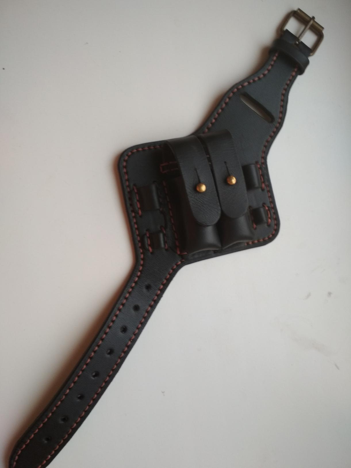 Предмет далеко не первой необходимости, но вдруг кому подойдет. Продам кожаный патронташ на запястье. Рассчитан на 2 патрона 12 калибра и 2 патрона 223. Был заказ на два таких. Себе я заказал только под 2х12. Другу заказал вот этот самый. Друг оказался неточен в формулировании своих желаний. Оказалось, направление гильз в его патронташе не совпало с желаемым. Я левша, он правша. Мы по-разному держим ружье и перезаряжаемся по-разному. В итоге для друга я заказал третий экземпляр, а этот предлагаю к продаже. Цена вопроса пусть будет 1000 руб. За изготовление мастеру уплачено 1500 руб. Так что в барыжничестве меня не обвиняйте)).